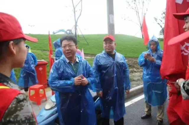 正如预报一样,雨势地不断加大。终于在下午5点,周龙一行的车队抵达青山区新沟桥街防汛段,志愿者冒雨将物资扛到了江堤边的安置点,巡防的官兵正在吃盒饭,看着送来的水和食物,他们连声感谢。