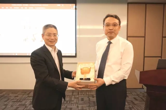 金融学会秘书长刘勤向新时达机器人赠送走访礼品