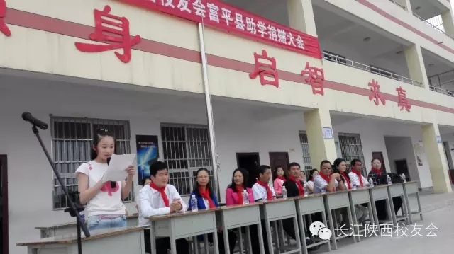 在这个属于孩子们的节日里,在一首感恩歌曲的伴随下,捐资助学仪式正式拉开帷幕。校长和6位受捐助学生代表接受了捐赠。山西初级中学校长、长江陕西校友会代表、渭南市领导、富平教育局领导分别进行了讲话。