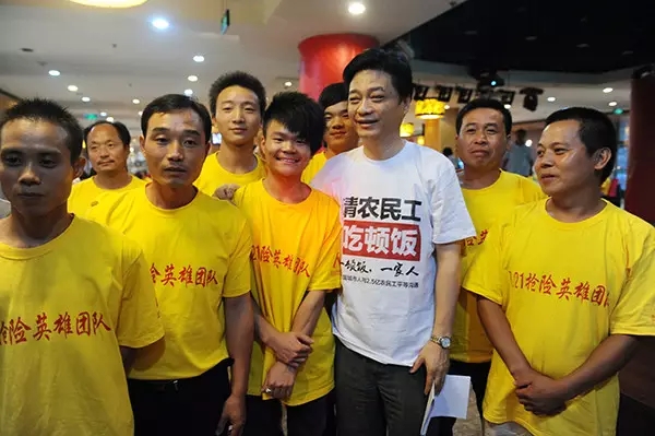[2012年7月30日,崔永元在北京宴请在7·21水灾中救人的农民工吃饭]