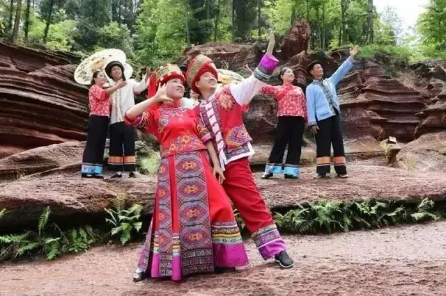 为帮助当地村民脱贫致富,红石林景区组织村民定期在景区表演