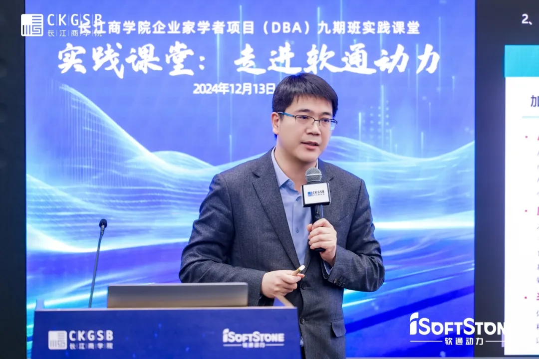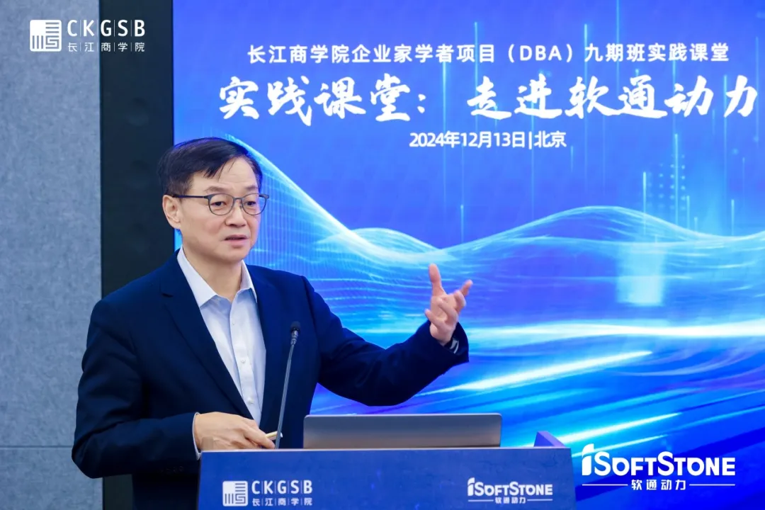 12月13日,长江DBA九期班同学们走进软通动力信息技术(集团)股份有限公司(以下简称软通动力),在DBA九期班同学、软通动力董事兼首席运营官车俊河的带领下参观了展厅,并聆听了DBA八期班同学、软通动力董事长兼CEO刘天文和CTO刘会福的深度分享,探寻软通动力在AI时代如何顺“势”而为,开创企业转型发展之路。