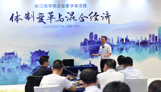 长江企业家学者项目实践课堂走进云南白药,企业家学者项目教授及研究团队为本次课程定制混合所有制改革专题研究,刘劲教授指出,混合所有制改革是今后五年经济发展的胜负手。云南白药总经理王明辉与同学们探讨云南白药混改的前世今生。